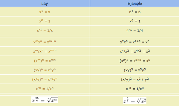 - Escribir el cuadro en el cuaderno. Corresponde a un resumen de la ley de la Potenciación: